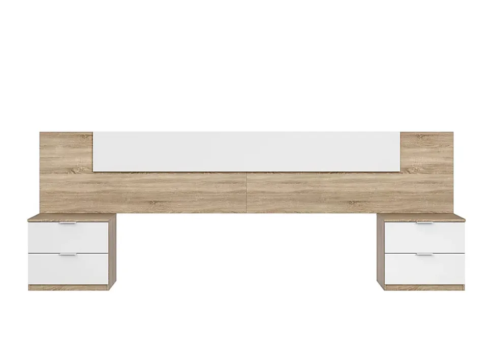 Apportez une touche moderne et chaleureuse à votre chambre avec cet ensemble composé d’une tête de lit élégante et de deux tables de chevet intégrées. L’association du blanc Artik lumineux et du chêne canadien effet bois crée un style contemporain et naturel, facile à harmoniser avec tous types de décorations.Composition : Tête de lit adapté pour lit 140 cm et 2 chevets de 2 tiroirs chacun.Dimensions de la tête de lit : H 50 x L 247 x P 3 cm Dimension de la table de chevet : H 45 x L 50 x P 38 cm . Tiroirs : H 10 x L 44 x P 30 cm. Poids maximum supporté par chaque tiroir : 5 kg. Poids maximum total supporté par le chevet : 15 kg. Couchage : 90×200 cmMatériel: Mélamine de 16 mmCouleur : chêne canadian / blanc artikPoids : 35 kgFabrication espagnole certifiée PEFCLivré en kitLivraison en RDC avec prise de RDV du lundi au vendredi
