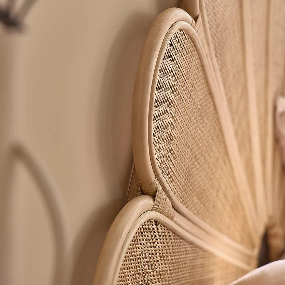 La tête de lit ROMY en rotin naturel de 160 cm marie charme floral, élégance vintage, et une touche exotique, créant ainsi une ambiance chaleureuse et authentique dans votre chambre. Cette tête de lit se glisse simplement entre le lit et le mur. Caractéristiques : Matière : Rotin – Couleur : Naturel – Hauteur : 137 cm – Longueur 180 cm – Profondeur : 6 cm – Poids : 6 kg – Garantie : 5 ans – Montage : Livrée montée.