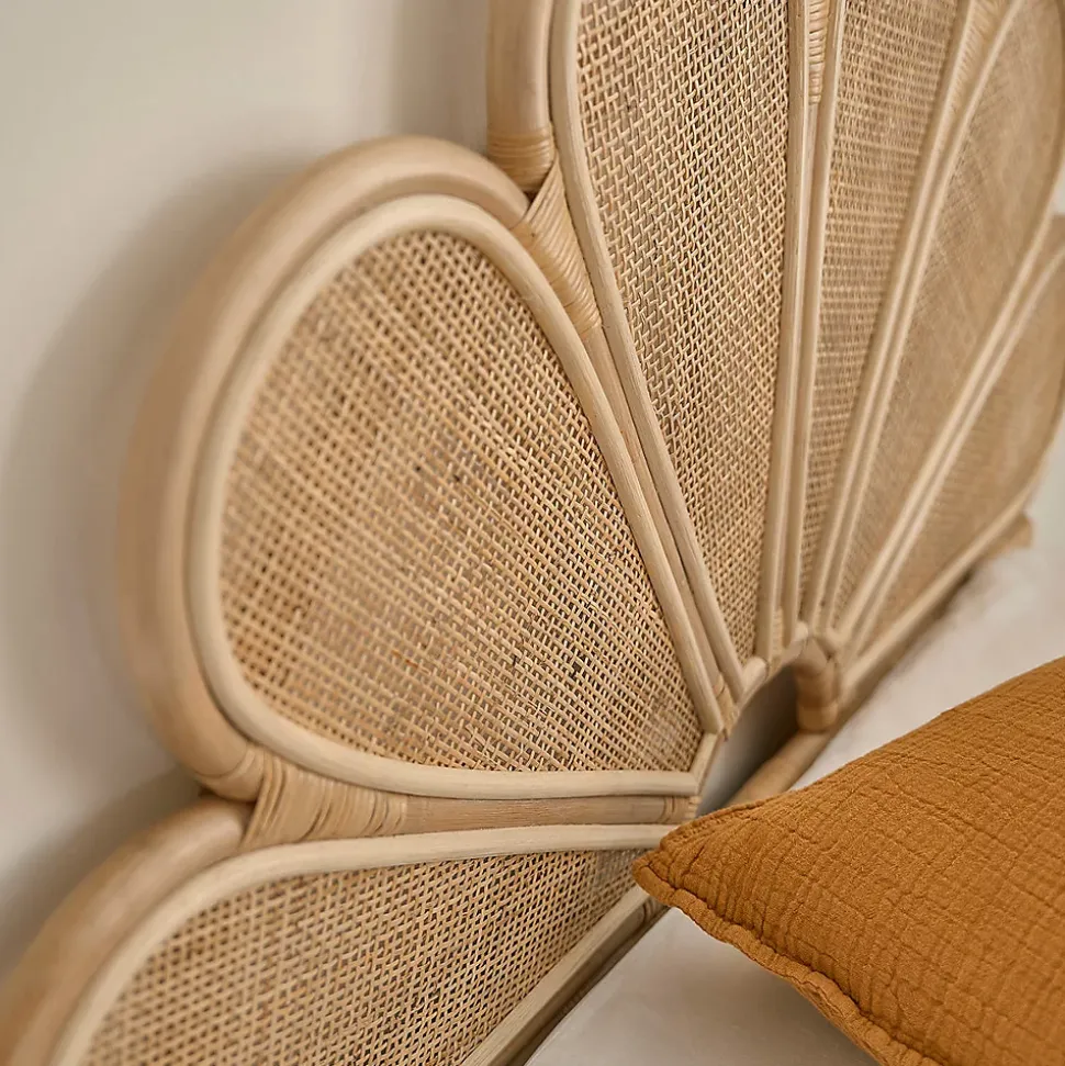 Inspirée par le style bohème, notre tête de lit en rotin et cannage 90 cm sera idéale dans la chambre de votre enfant. Cette tête de lit se glisse simplement entre le lit et le mur. Caractéristiques : Matière : Rotin – Couleur : Naturel – Hauteur : 101 cm – Longueur 115 cm – Profondeur : 6 cm – Poids : 4 kg – Garantie : 5 ans – Montage : Livrée montée.