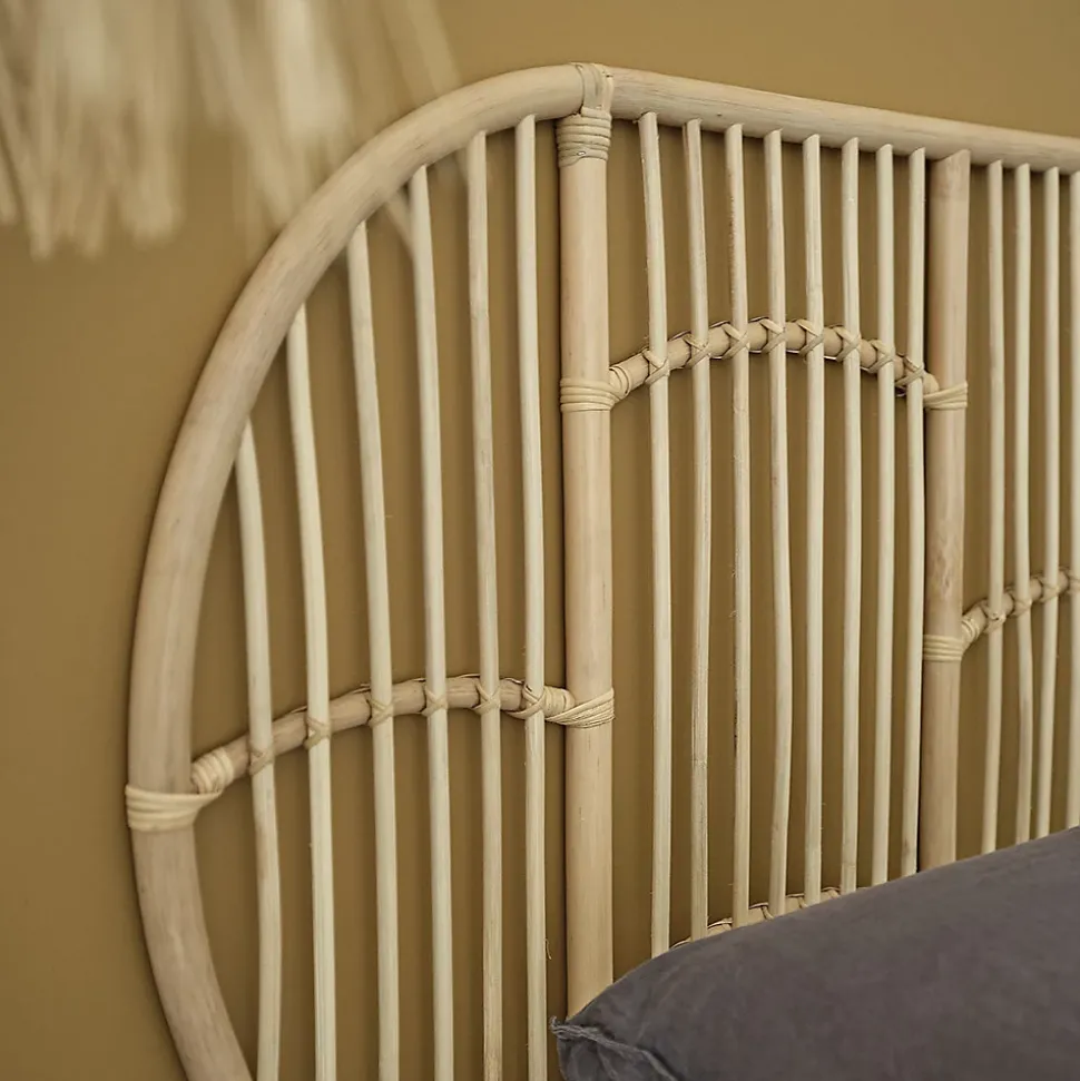 Si vous aimez l’authenticité, cette tête de lit est faite pour votre chambre ! Elle se distingue par ses lignes et courbes douces et solaires. Conçue pour un sommier de deux personnes, elle sera idéale pour un lit de 160 cm. Caractéristiques : Matière : Rotin – Couleur : Naturel – Largeur : 165 cm – Profondeur : 3,5 cm – Hauteur : 115 cm – Poids : 4,40 kg – Particularité : A poser contre le mur – Garantie : 5 ans – Montage : Livrée montée.