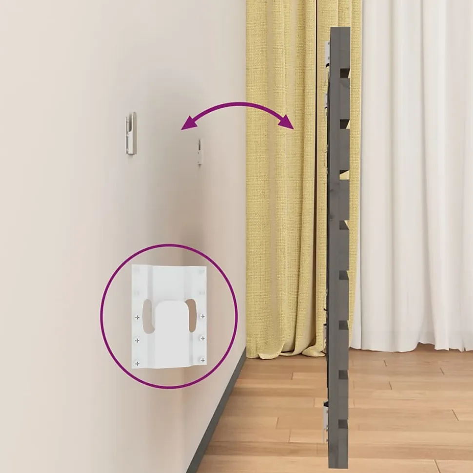 La tête de lit murale en bois présente un design classique qui ajoute une touche d’élégance à toute chambre à coucher ! Bois de pin massif : le bois de pin massif est un matériau naturel magnifique. Le bois de pin a un grain droit et les nœuds donnent au matériau son aspect caractéristique et rustique.Installation murale : cette tête de lit est facile à monter sur le mur à la tête de votre lit.Excellent soutien : la tête de lit vous offre un excellent soutien du dos lorsque vous êtes assis dans votre lit pour lire ou regarder la télévision.Types de lit appropriés : la tête de lit murale est utilisée pour les lits sans tête de lit. Remarque :Chaque produit est livré avec un manuel de montage dans la boîte pour un montage facile.Couleur : grisMatériau : bois de pin massifDimensions : 156 x 3 x 63 cm (L x l x H)Installation murale