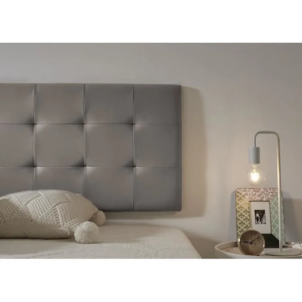 Tête de lit suspendue en similicuir gris, au design moderne et minimaliste. Dimensions : 112 x 57 x 5 cm, idéale pour lits de 80 à 110 cm. Fabriquée en panneaux de particules avec rembourrage en mousse, elle optimise l’espace et offre un confort supérieur. Garantie 3 ans, fabriquée en Espagne.