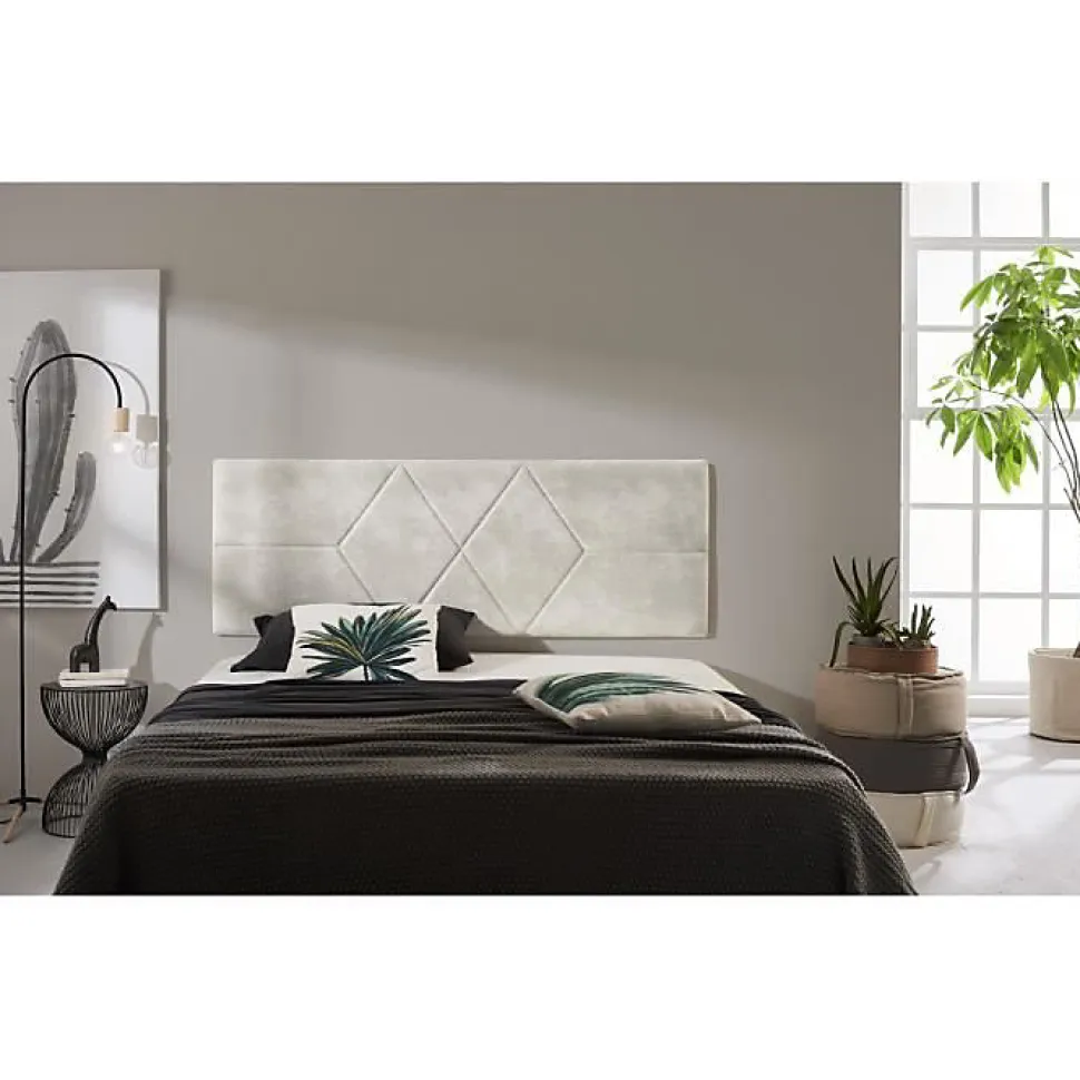 Tête de lit pour lit de 120 Deux Diamants de Tissu Anti-Tache 152 x 57 x 5 cm Couleur Blanc Gris Effet Granit. ECCOX