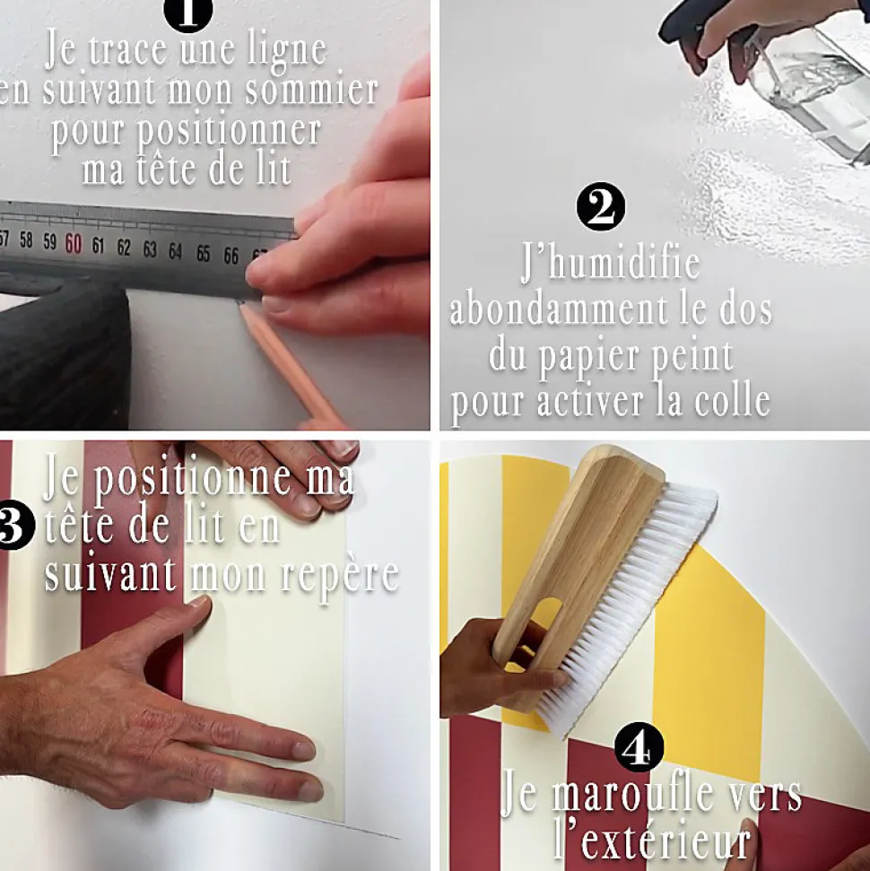 Tête de lit pré-encollée – Décoration murale facile et originale (Fabrication française)Sublimez votre chambre en un clin d’œil avec nos têtes de lit intissées pré-encollées, design unique et fabrication française.Décorez et protégez le mur derrière votre lit avec style grâce à ce papier pré-encollé !La pose est facile et rapide, et le résultat est garanti ! Choisissez une des trois tailles disponibles et laissez la magie opérer.Envie d’un format panoramique ? Découvrez nos papiers peints pour encore plus de grandeur à vos projets d’intérieurs qui s’y déclinentDimensions de ce produit : 160 cm de longueur x 110 cm de hauteur : correspond à un lit queen size. Points forts : Pose facile et rapide : Papier intissé pré-encollé, il suffit d’humidifier ! Design unique et original : Apportez une touche personnelle et poétique à votre chambre. Fabrication française : Dans notre atelier à Agen. Éco-respectueux : Papier sans PVC.Caractéristiques techniques : Matériau : Papier intissé pré-encollé haute densité 225g/m² Dimensions : 3 tailles sont disponibles pour ce modèle : lits doubles (140 x 110 cm) – Fabriqué dans notre atelier à Agen, queen-size (160 x 110 cm) – Fabriqué dans notre atelier à Agen et king-size (180 x 110 cm) – Fabriqué dans notre atelier à Agen Type de pose : Facile, avec de l’eau Certification : Gestion durable des forêts Classement au feu : C Fabrication : Française, dans notre atelier à Agen Qualité HD : Impression haute définition pour un rendu exceptionnel.Conseils d’utilisation : Préparer le mur : Nettoyer et lisser la surface. Humidifier le dos du papier peint pour activer la colle. Appliquer le papier peint sur le mur en exerçant une pression uniforme. Laisser sécher et la déco est jouée !