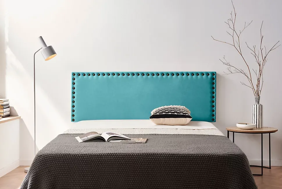 Tête de Lit Tapisée MODENA Aqualine 145x55x8 cm - Turquoise - Moonia