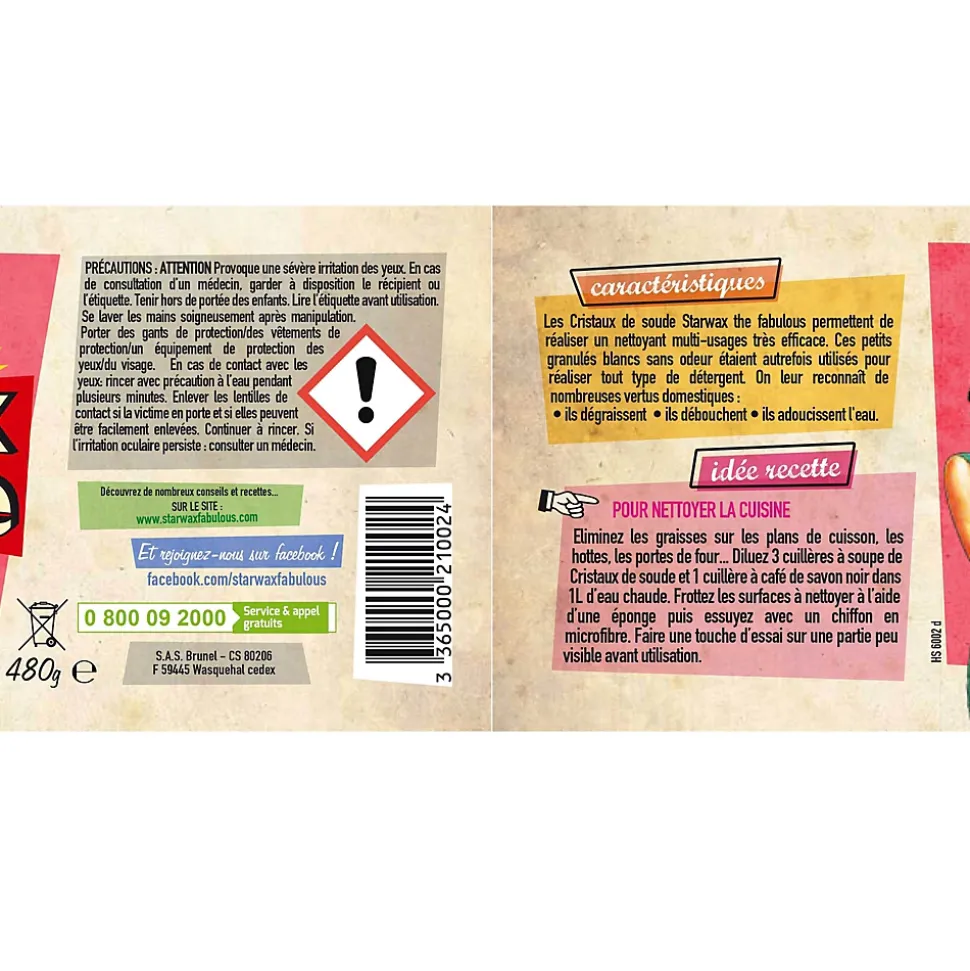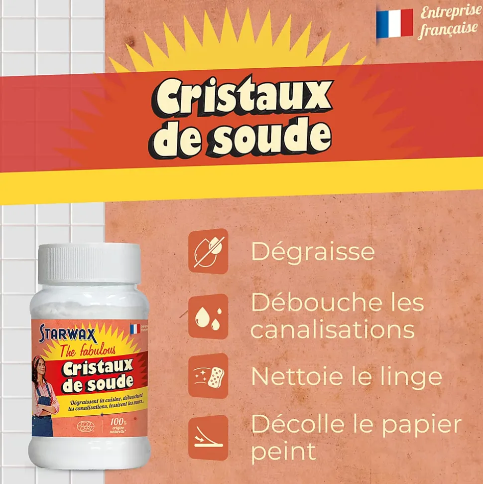 « The Miraculous Cristaux de Soude » est un bon produit nettoyant et dégraissant multi-usages. Il est plus corrosif que le Bicarbonate de Soude. Lessive les murs, Débouche les canalisations