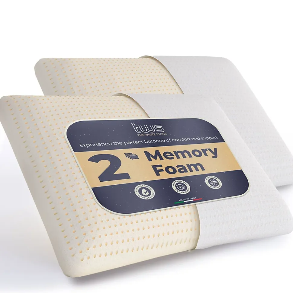 The White Stone Lot de 2 Oreillers en Mousse à Mémoire de Forme 40 x 70 cm, Hauteur 11 cm