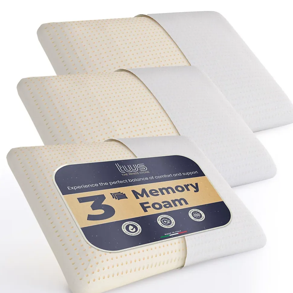 - Oreiller en Mousse à Mémoire de Forme The White Stone – Oreiller de lit ergonomique 40×70 cm. Oreiller en mousse viscoélastique thermosensible, qui répartit uniformément le poids de la tête et du cou pour prévenir les douleurs et améliorer la posture. Respirant et hypoallergénique, grâce aux trous de ventilation et à la housse anti-acariens et antibactérienne, il assure fraîcheur et sécurité. Design ergonomique et hypoallergénique, idéal pour tous les âges, avec un soutien optimal pour la respiration. Facile à nettoyer et prêt à l’emploi : il suffit d’ouvrir l’emballage sous vide et de laisser reprendre sa forme.