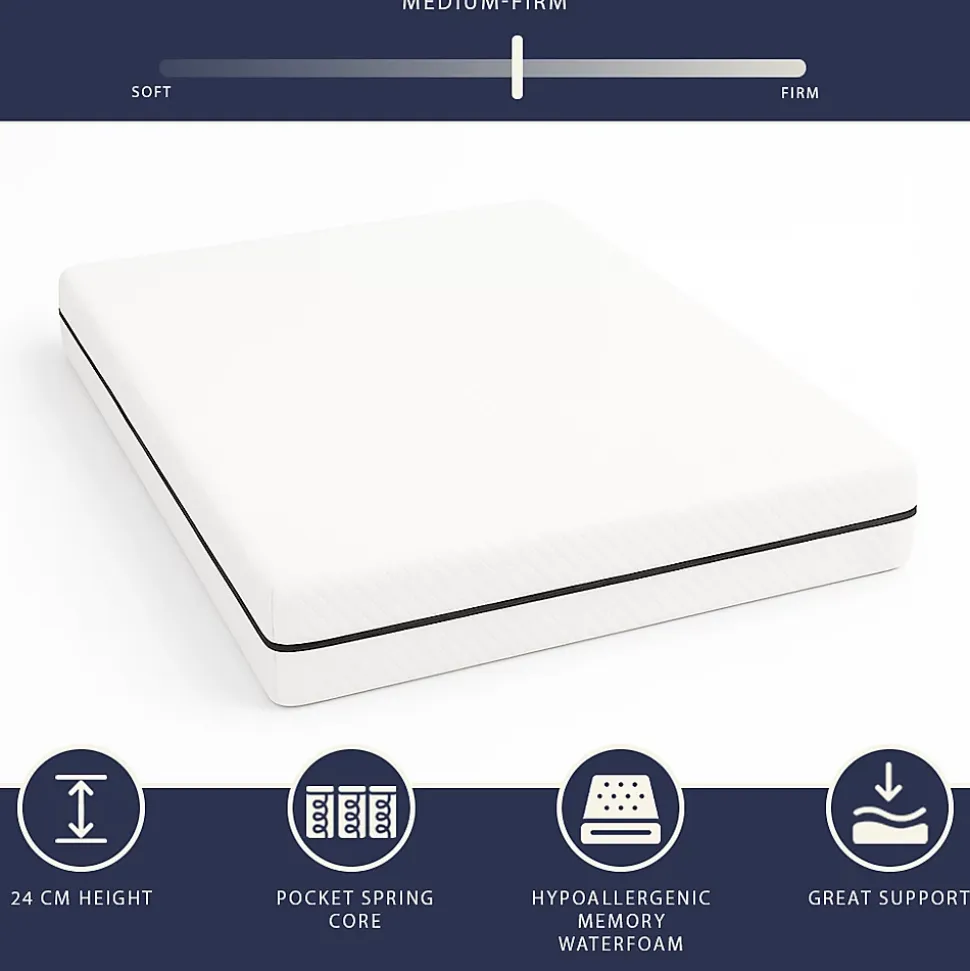 - Matelas Memory Waterfoam avec noyau à ressorts ensachés, hypoallergénique et à haute résilience, combinant douceur et soutien élastique pour un confort ergonomique supérieur. Favorise le bon alignement de la colonne vertébrale, réduit les points de pression et améliore la qualité du sommeil. Hypoallergénique, antibactérien et respirant, avec housse stretch de haute qualité. Hauteur 24 cm, idéal pour maisons, B&B, hôtels et chambres de tout type.