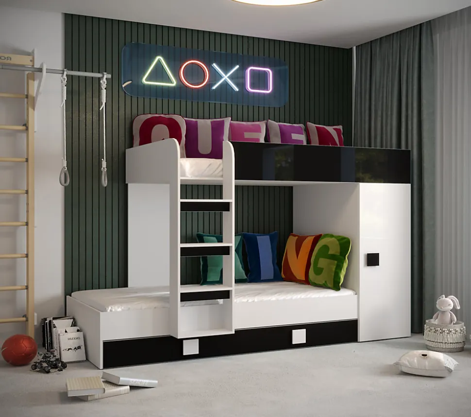 - TOLEDO 2 Lit superposé 203,3/106,6/125 (blanc/noir)