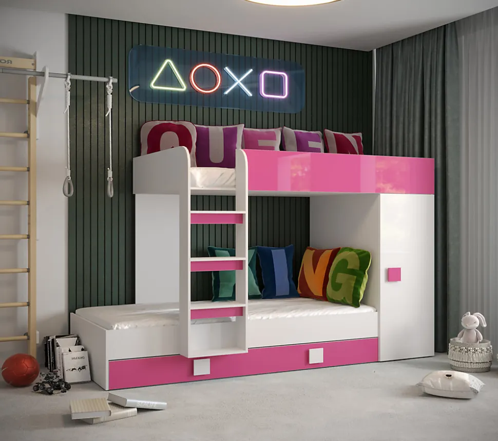 - TOLEDO 2 Lit superposé 203,3/106,6/125 (blanc/rose)
