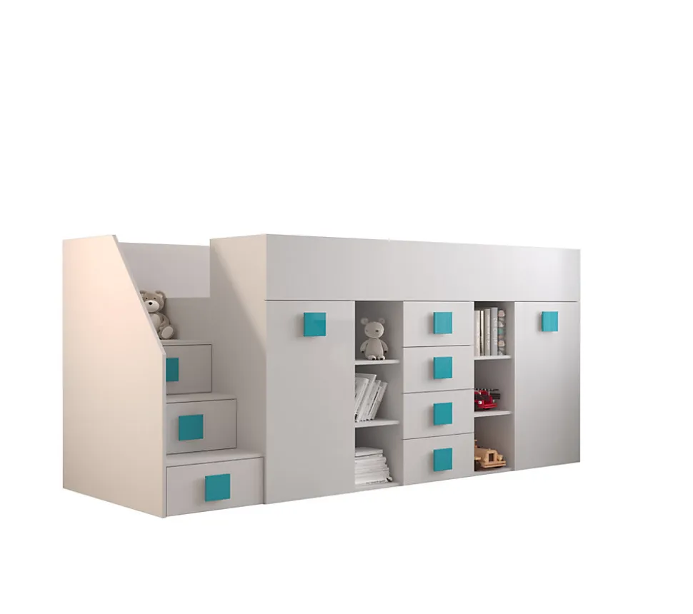 - TOLEDO 3L Lit superposé 248,5/123/93 (blanc/blanc/turquoise)