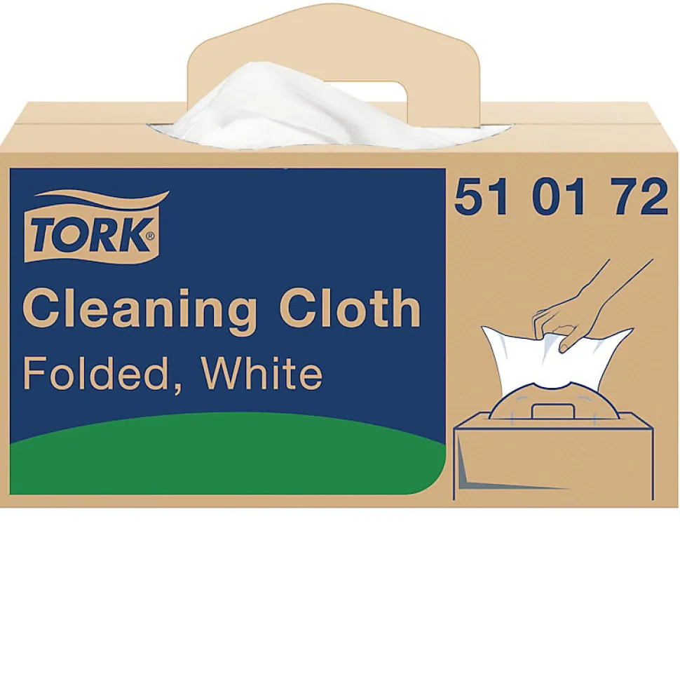 Tork Chiffon de Nettoyage Multi-usages blanc W7 :Notre Chiffon de Nettoyage multi-usages Tork est adapté aux nettoyages légers et aux endroits difficiles à atteindre. Souple et doux, ce chiffon résistant 1 pli absorbe l’huile et les liquides. Améliorez l’efficacité et facilitez votre nettoyage grâce à la Handy Box Tork, rapide à ouvrir, légère à transporter et simple à jeter. Réalisé en fibres 100 % recyclées, cet emballage s’inscrit dans une démarche durable, tandis que la distribution feuille à feuille réduit la consommation de chiffons.