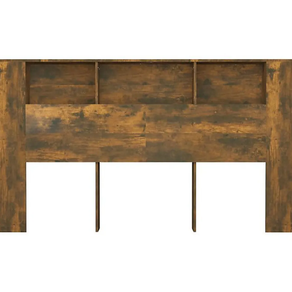Tête de lit chêne fumé en bois d’ingénierie 180 x 18,5 x 104,5 cm avec 3 compartiments de rangement, fixation murale fournie. Style scandinave contemporain, meuble en kit.