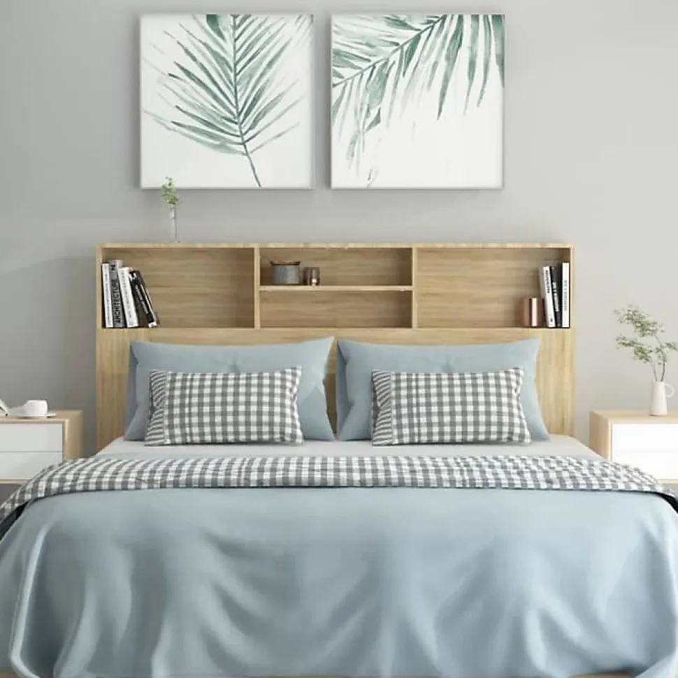 Cette armoire de tête de lit en bois d’ingénierie est un complément parfait pour la chambre, offrant une solidité et une durabilité ainsi qu’un espace de rangement et une esthétique chaleureuse avec sa finition chêne sonoma.
