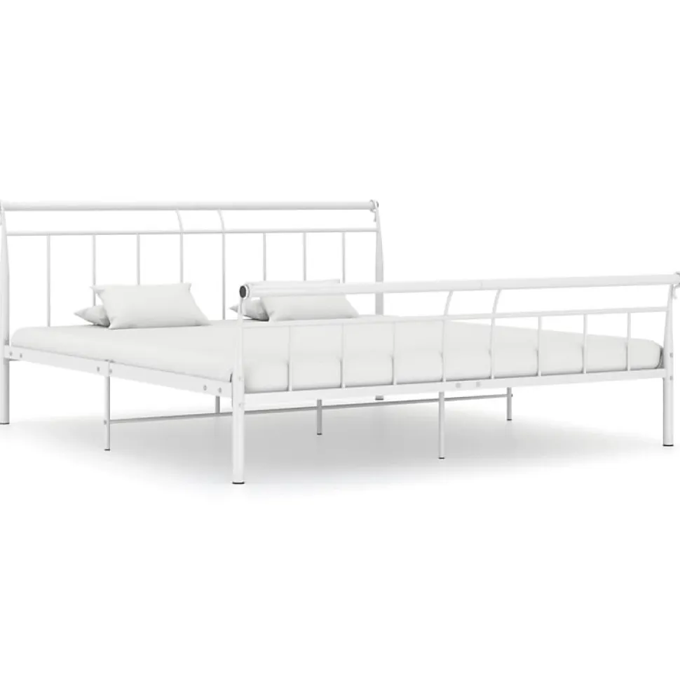 Cadre de lit sans matelas en métal blanc de 160×200 cm, robuste et durable, facile à monter et entretenir, idéal pour une chambre moderne.