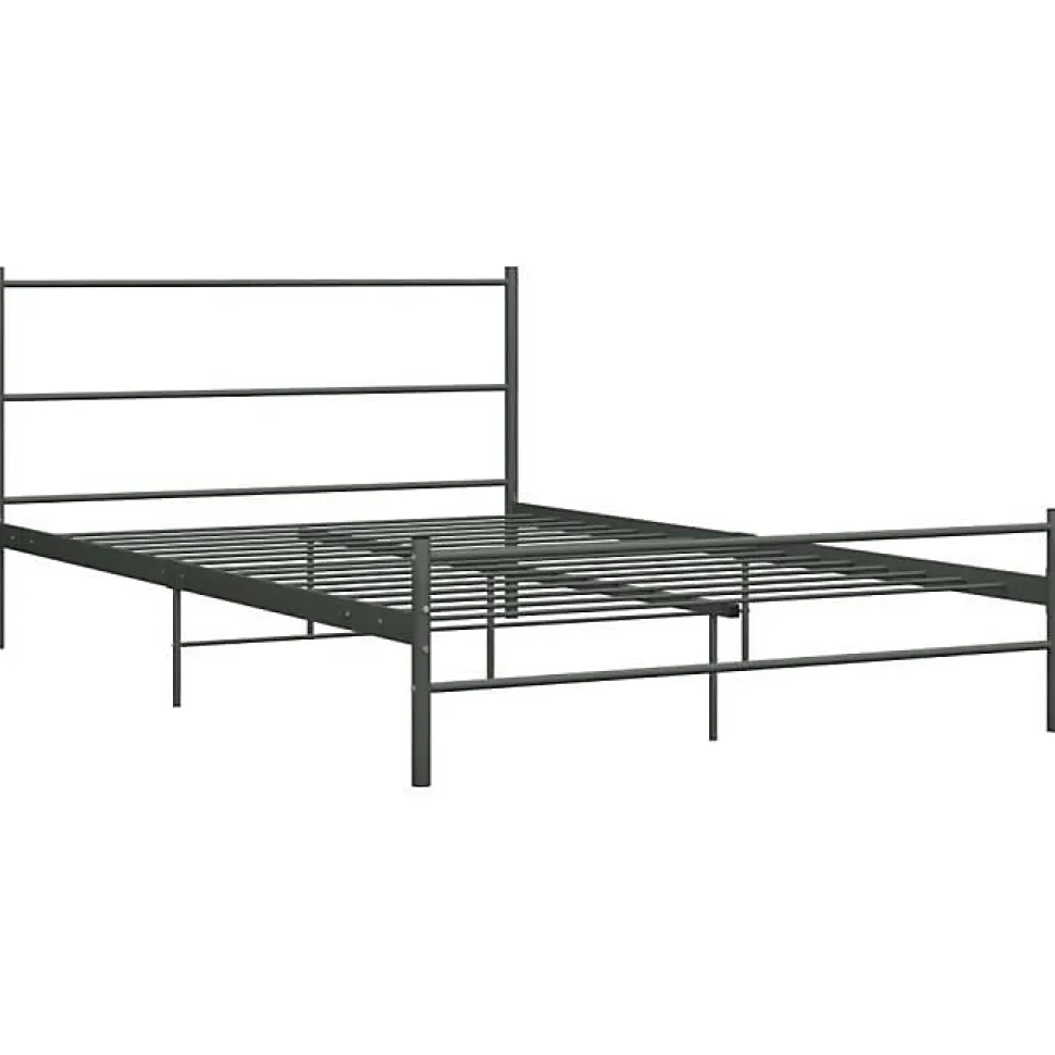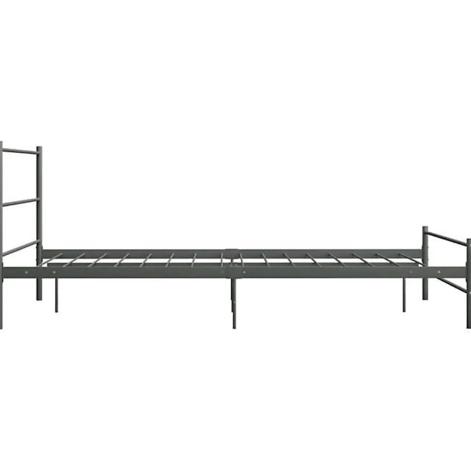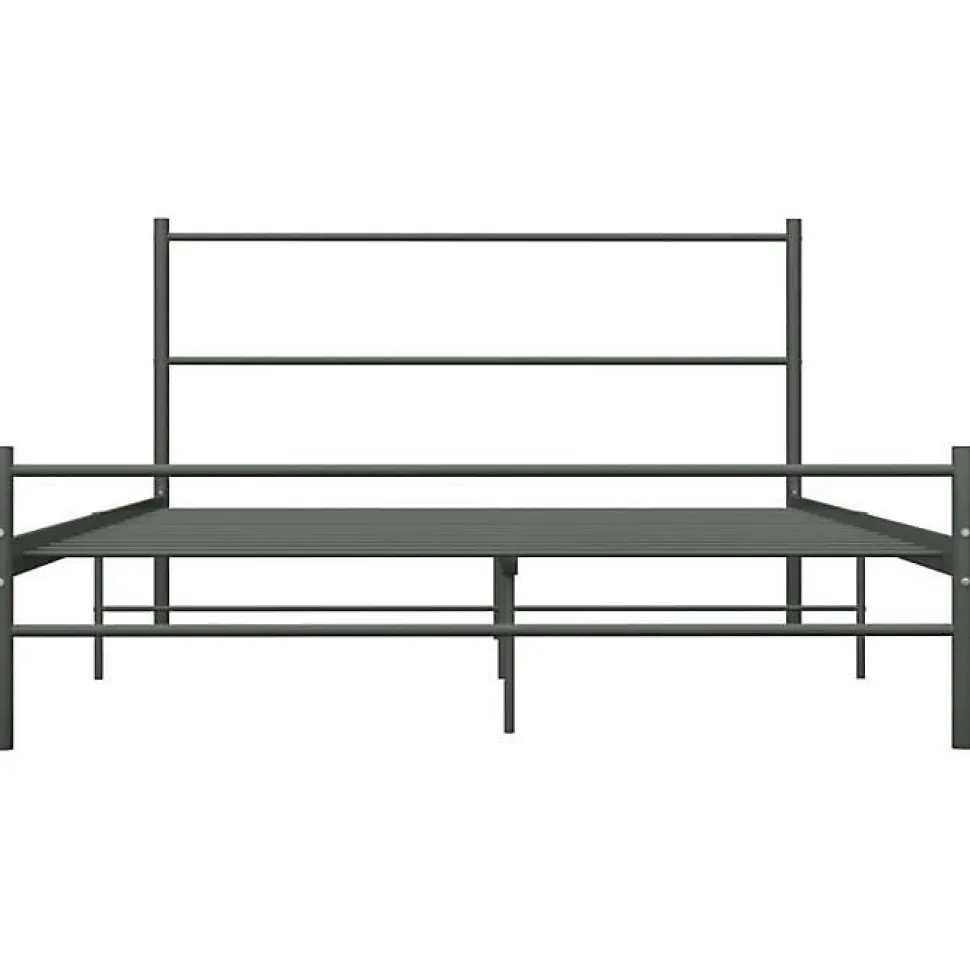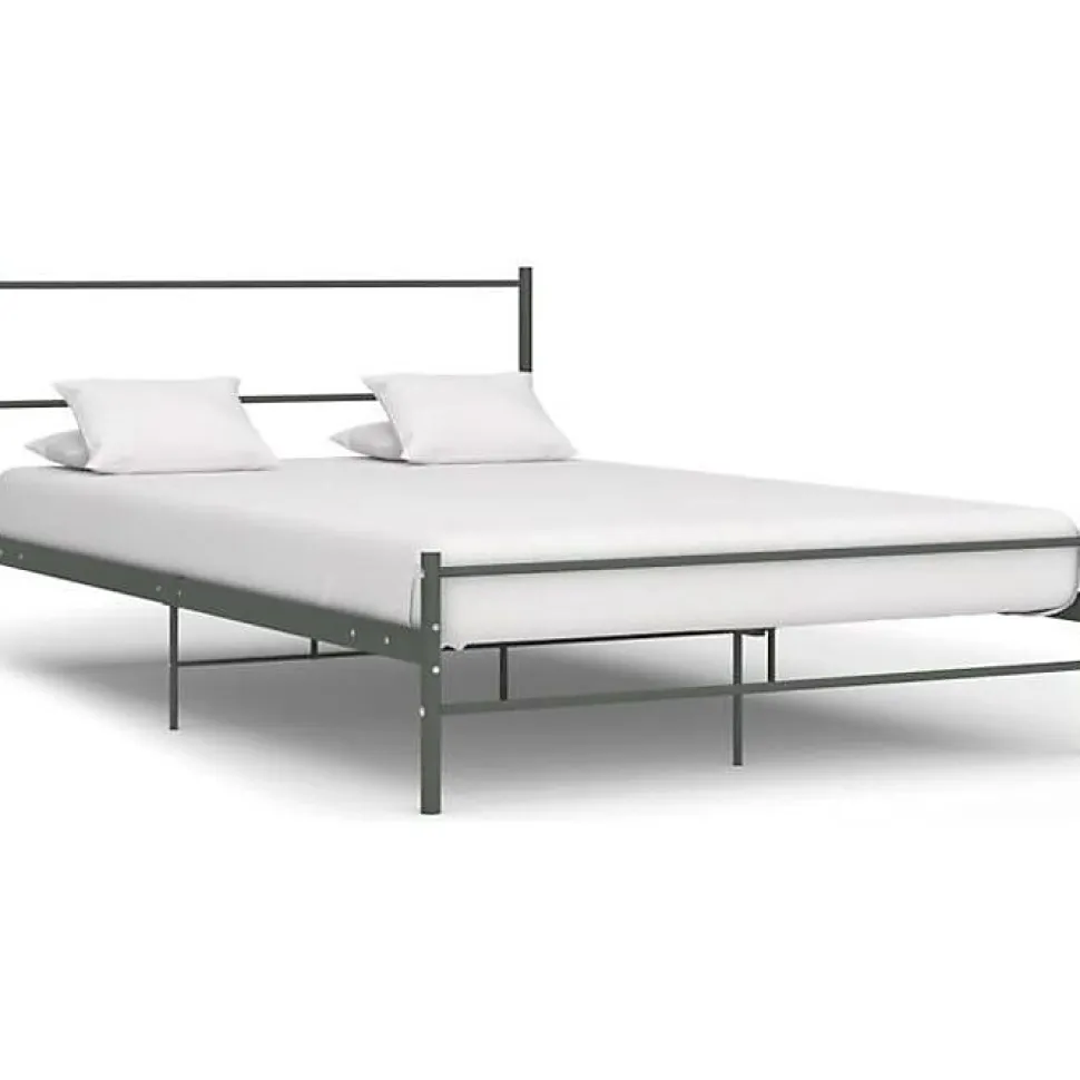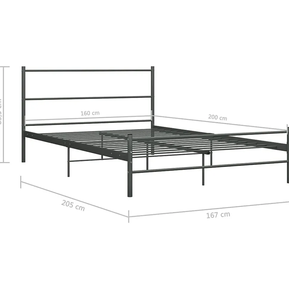 Cadre de lit métal gris 160×200 cm avec tête de lit. Structure robuste et design moderne. Pieds et lattes métalliques, espace de rangement sous le lit. Facile à nettoyer et durable.