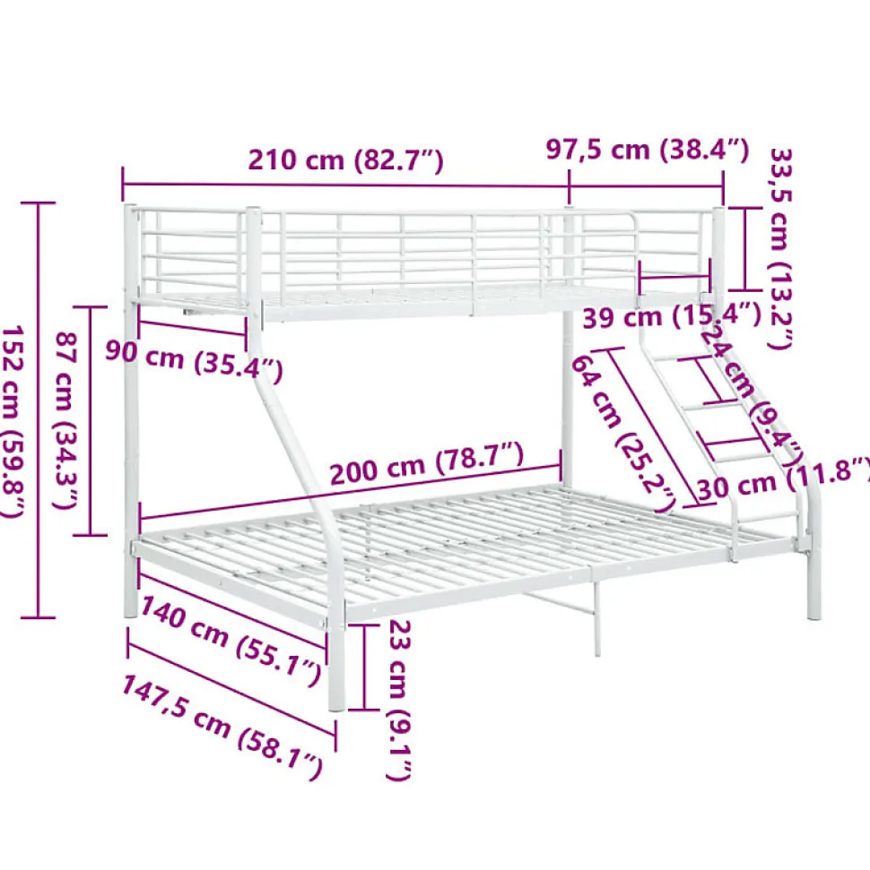 Ce lit superposé en métal est élégant et fonctionnel, parfait pour toute chambre avec espace limité. Il est sécurisé avec des garde-corps sur toute la longueur et une échelle solide. Les matelas ne sont pas inclus.