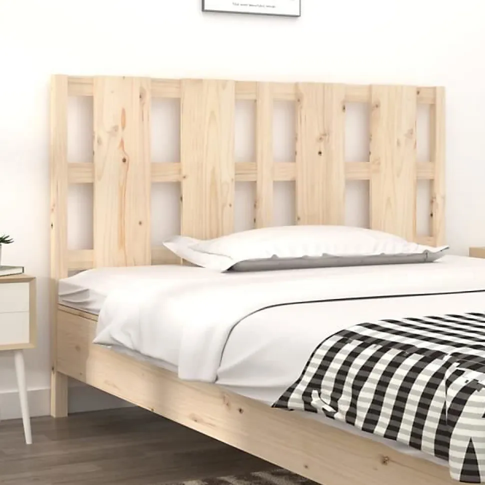 Tête de lit en bois de pin massif non traité au style rustique. Dimensions 140,5 x 4 x 100 cm. Montage requis. Offre un soutien dorsal confortable et un aspect naturel chaleureux.