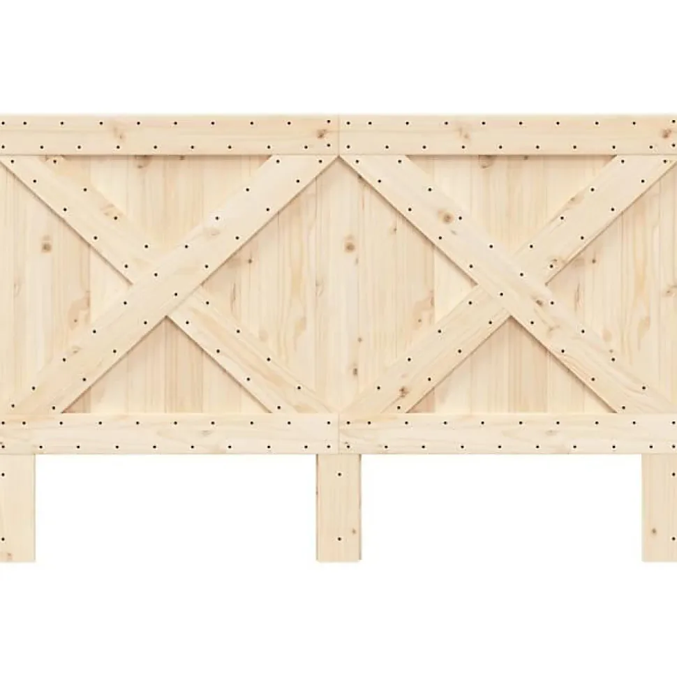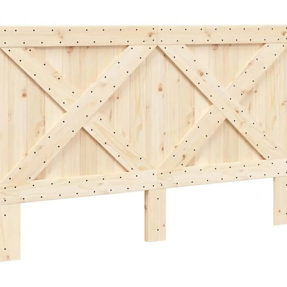 Tête de lit en pin massif non traité, style rustique, compatible lit 160 cm. Cadre robuste, vis incluses, assemblage requis.