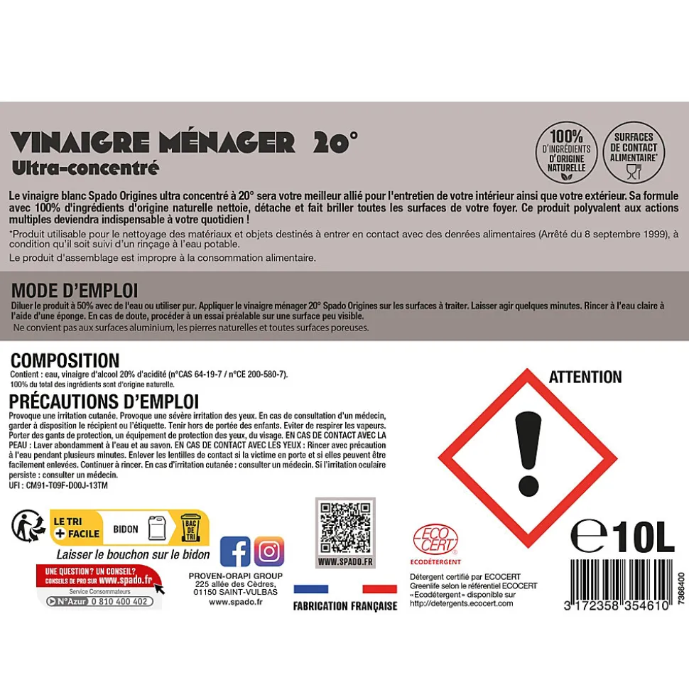 Vinaigre blanc ultra concentré à 20° Gloss 10L