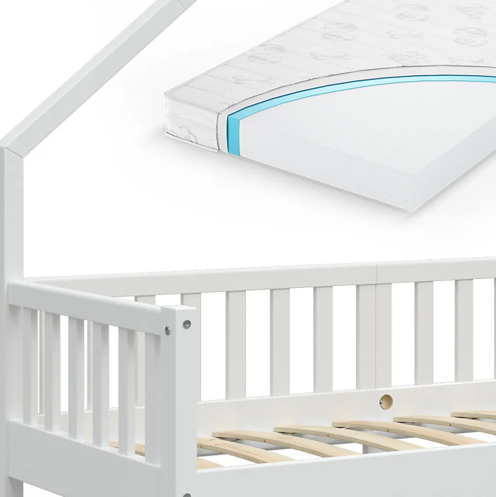 Le lit pour chambre d’enfant « Noemi » est une bonne décision pour tous les parents en quête d’un design optimal pour la chambre de leur enfant. Avec son allure élégante, il conviendra à tous les foyers.Le lit en bois pour enfants est un lieu d’inspiration pour l’imagination et la créativité. La haute qualité du produit assure un moment fort dans la chambre des enfants.DIMENSIONS : Le Lit enfant convient pour un matelas de80x160 cm et a une hauteur de 155 cm. Toutes les tailles détaillées sont indiquées sur les photos.MATÉRIAU: Le lit enfant avec toit est composé de bois de pin naturel.CONTENU DE LA LIVRAISON: Lit de maison, Matelas, Instructions de montage, Matériel de montage.