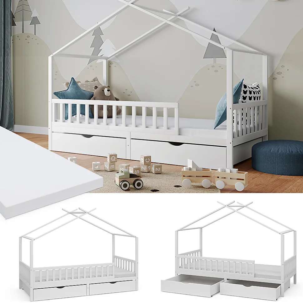 Le lit denfant Livinity Franka en blanc offre un espace de rangement supplémentaire pour la chambre denfant grâce à ses 2 tiroirs.Grâce au design de la maison de lit, vous pouvez personnaliser le lit avec des décorations ou des rideaux.DIMENSIONS : Le Lit enfant convient pour un matelas de90x200 cm et a une hauteur de 155 cm. Toutes les tailles détaillées sont indiquées sur les photos.MATÉRIAU: Le lit de la maison est constitué de bambou faciles à entretenir.CONTENU DE LA LIVRAISON: Lit de maison, 2x tiroir, Matelas, Instructions de montage, Matériel de montage.
