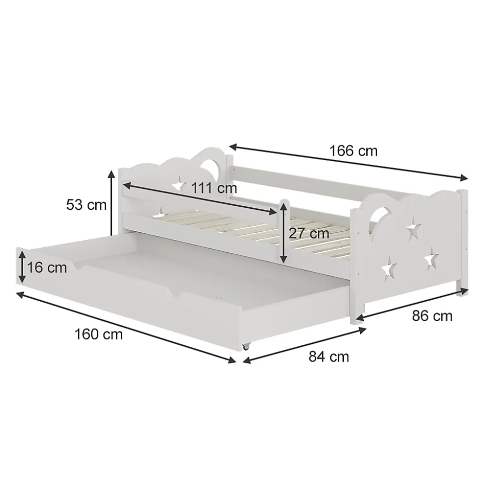 Vitalispa Lit pour enfant Blanc 80×160 cm avec tiroir, sans matelas