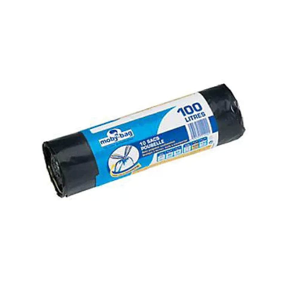 Lot de 10 sacs poubelle à poignée Dart. 100 Litres. Coloris bleu.