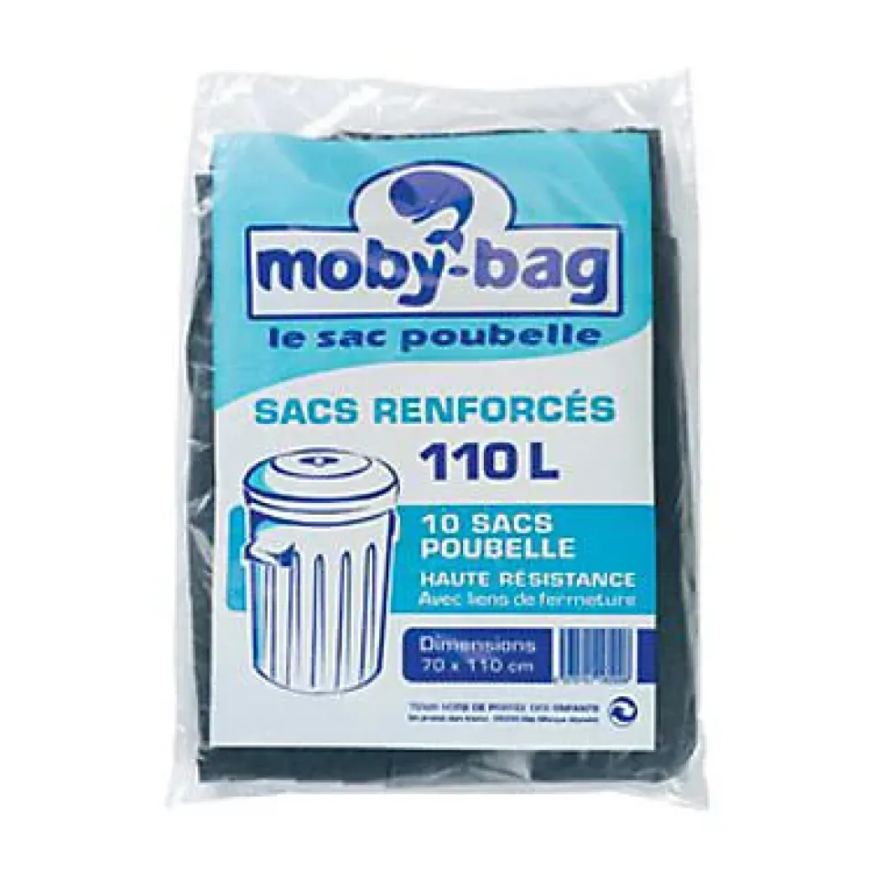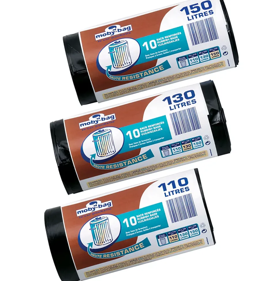 Lot de 10 sacs poubelle renforcés Dart. 110 Litres. Coloris noir.