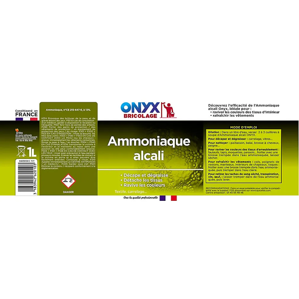 Ammoniaque alcali 13° Onyx bricolage 1L