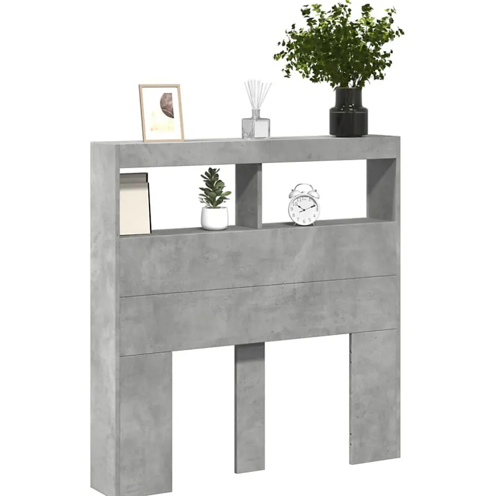 Cette armoire tête de lit à LED, au design élégant, donne à votre cadre de lit une touche de modernité étonnante et convient parfaitement à toute chambre à coucher. Matériau durable : le bois d’ingénierie est d’une qualité exceptionnelle avec une surface lisse et présente également résistance, stabilité et résistance à l’humidité.Lumières LED RVB : la tête de lit est équipée de lumières LED RVB vibrantes. Avec divers menus personnalisables, vous pouvez changer sans effort la couleur des lumières et même les régler automatiquement. Ces lumières LED renforcent non seulement l’aspect contemporain de la tête de lit, mais ajoutent également à son attrait tendance.Grand espace de rangement : dotée de compartiments et d’un dessus robuste, la tête de lit avec armoire est parfaite pour exposer vos livres, objets décoratifs, cadres et réveils.Excellent soutien : la tête de lit vous offre un excellent soutien dorsal lorsque vous vous asseyez dans votre lit pour lire ou regarder la télévision. Bon à savoir :La livraison comprend uniquement la tête de lit à LED. Le cadre de lit et le matelas ne sont pas inclus. Vous pouvez consulter notre boutique pour les cadres et matelas assortis.Ce produit est doté d’un connecteur USB qui nécessite une source d’alimentation USB de 5V certifiée (non incluse). Attention :Pour éviter qu’il ne bascule, ce produit doit être utilisé avec le dispositif de fixation murale fourni.Couleur : Gris bétonMatériau : bois d’ingénierieDimensions : 100 x 17 x 102 cm (l x P x H)Capacité de charge maximale : 40 kgAssemblage requis : ouiLegal Documents:Vous trouverez ici plus de détails sur la façon d’empêcher vos meubles de basculer