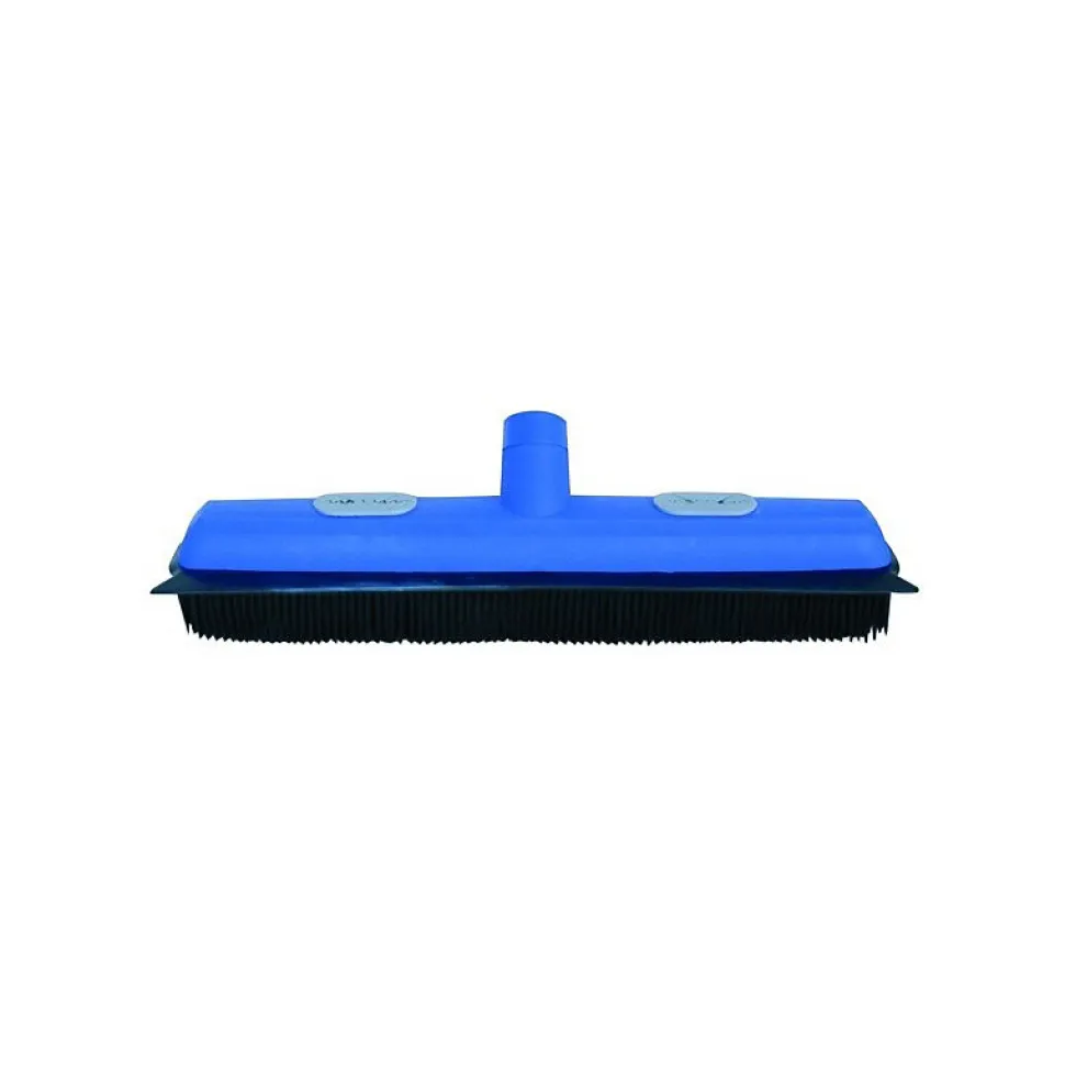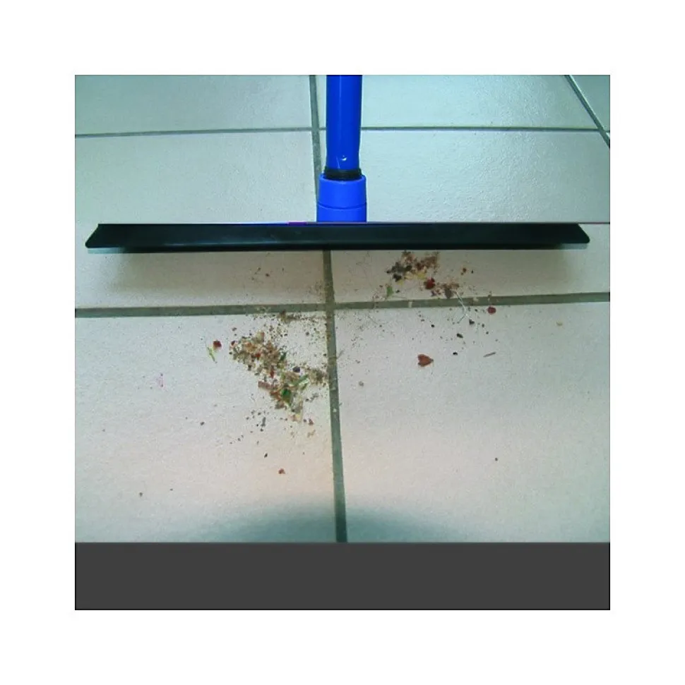Balai raclette avec accroche de la marque MSV. Accessoire de ménage multi fonction : balai et racle ! Muni de picots en caoutchouc qui deviennent électrostatiques pour capturer et retenir les poussières, saletés, poils et cheveux facilement. Raclette intégrée : elle permet de rassembler et de racler les miettes facilement. Système de fixation pour Serpillière intégré. Efficace et gain de temps assuré ! Livré sans manche. Dimensions:34x6x10cm Couleur: Bleu Matière: caoutchouc