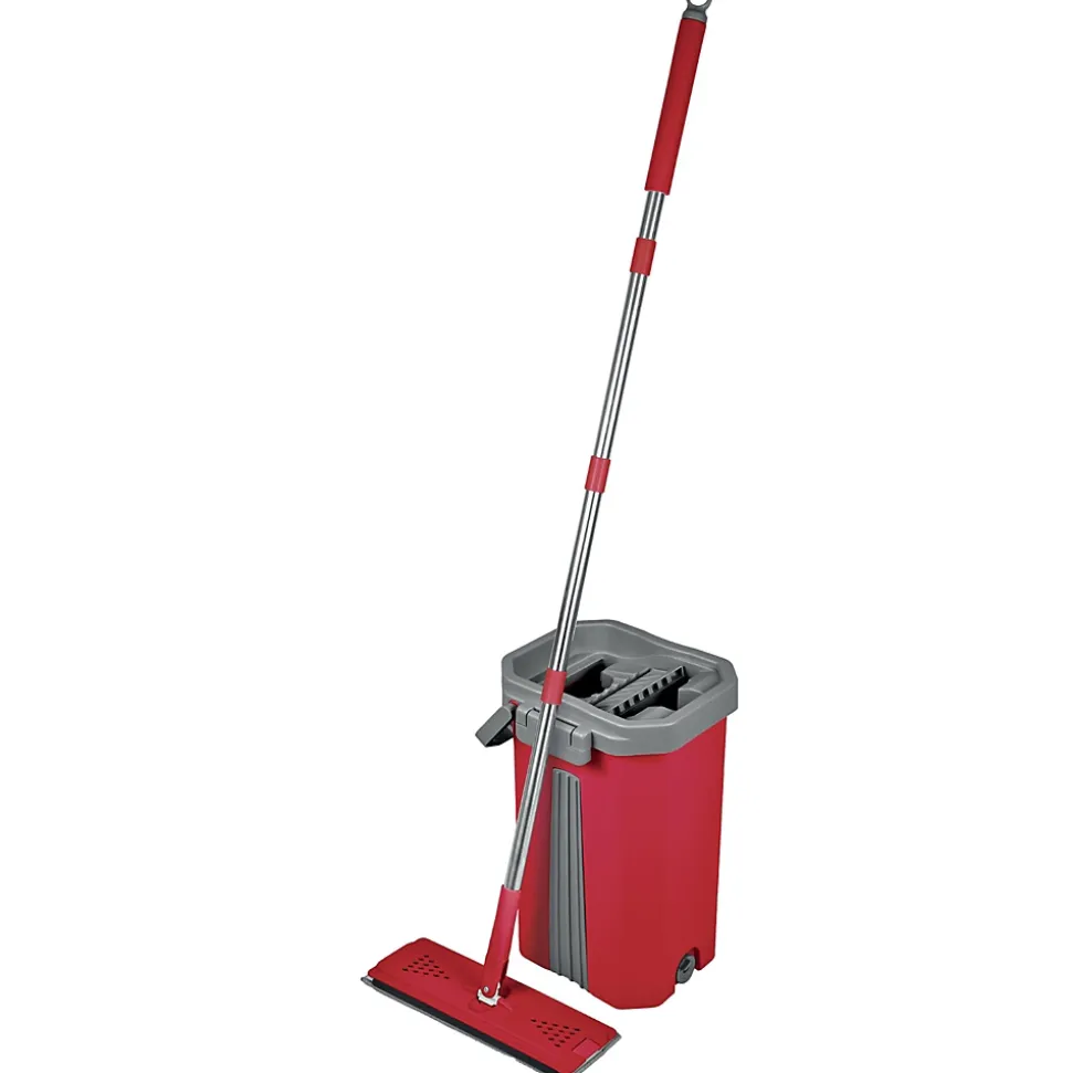 - Seau ultra compact pour un rangement optimisé du balai, même dans les tous petits espaces.