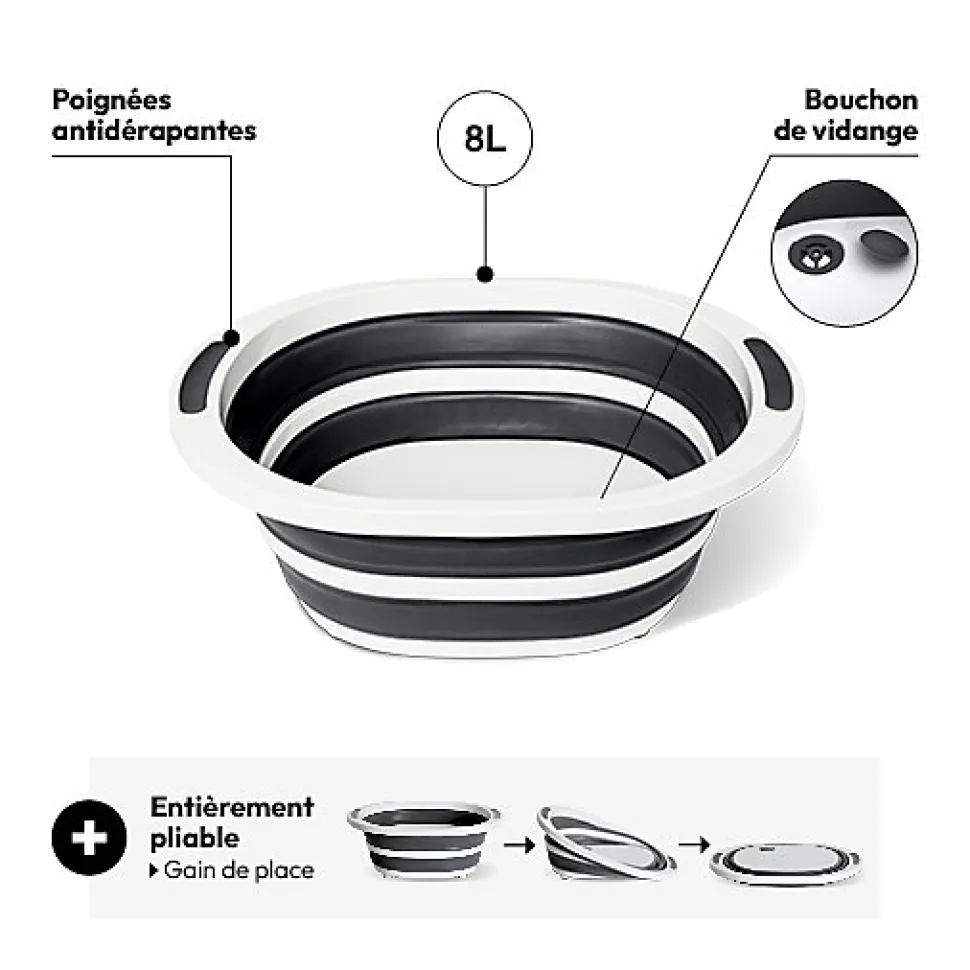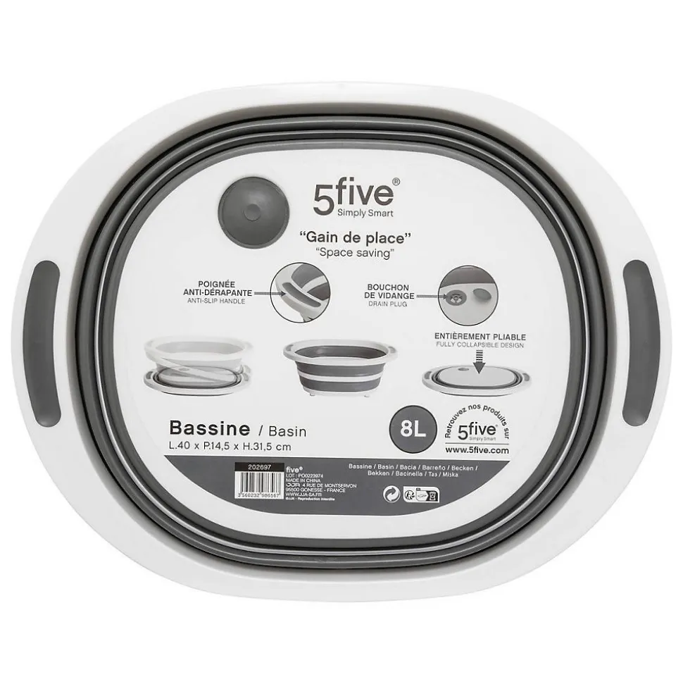 Bassine « Retractable » 8L avec bouchon de vidange gris et blancContenu : 1 bassineDimensions : L. 40 x P. 15.2 x H. 31.6 cmColoris : BlancMarque : 5 five simply smart
