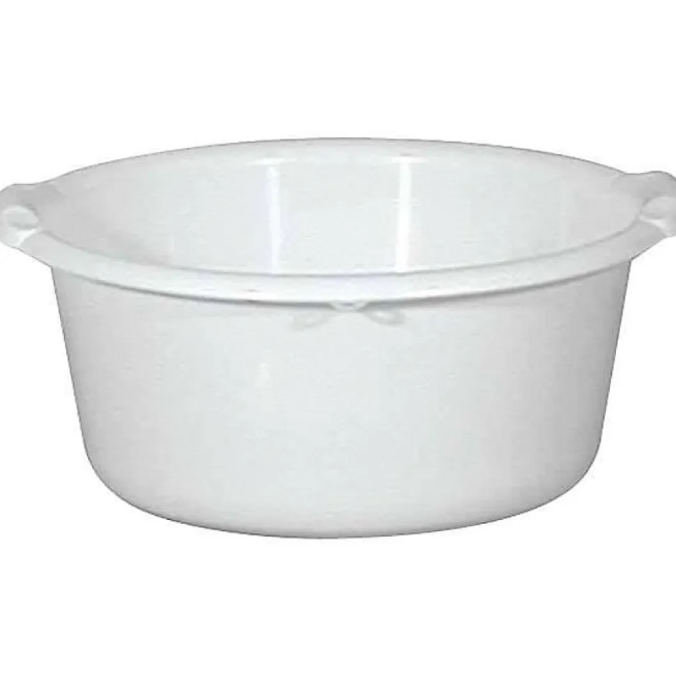 Bassine ronde ALUMINIUM ET PLASTIQUE en plastique avec des anses coquilles. – Qualité alimentaire. – Capacité : 14 L. – Diamètre : 40 cm. – Hauteur : 17.5 cm. – Coloris : blanc.…