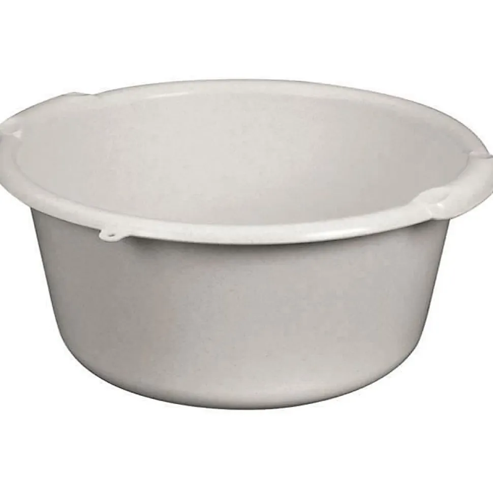 Bassine ronde ALUMINIUM ET PLASTIQUE. – Deux poignées coquilles. – Diamètre : 44 cm. – Hauteur : 20 cm. – Capacité : 20 L. – Coloris : gris moucheté. – Matière : plastique. Fabrication française.…