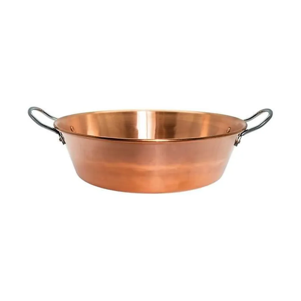La bassine à confiture Baumalu en cuivre 38 cm allie tradition et qualité professionnelle avec une fabrication française et du cuivre brut de 1,2 mm d’épaisseur. Elle garantit une conduction thermique optimale pour des cuissons homogènes et une contenance de 9 litres idéale pour préparations en grande quantité. Compatible avec tous feux sauf induction, elle est dotée d’anses inox rivetées pour une longévité accrue.