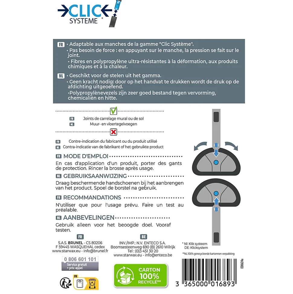 Brosse à joints de carrelage mural ou de sol, Starwax