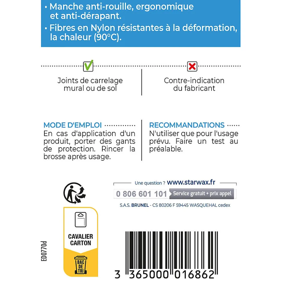 Récure efficacement les joints, les recoins et les angles grâce à sa tête étroite. Poignée ergonomique et anti-dérapante pour une bonne prise en main. Ne rouille pas.