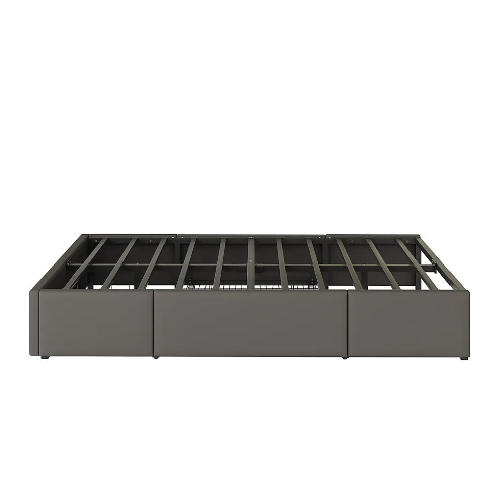 Lit 90×200 cm en simili cuir avec tiroirs et LED – Design sans tête de litCe lit en simili cuir au style épuré est une solution pratique et tendance pour les petites chambres. Grâce à sa base robuste en métal, il supporte jusqu’à 200 kg sans nécessiter de sommier supplémentaire.Doté de plusieurs tiroirs intégrés, il offre un espace de rangement optimal pour vêtements, linge de lit ou accessoires. Une bande LED multicolore au pied du lit, contrôlée à distance, permet de créer une ambiance lumineuse selon vos envies.Caractéristiques :Tiroirs spacieux pour rangement discretBande LED changeante avec télécommande incluseStructure robuste sans tête de lit, personnalisableSimili cuir facile à entretenir et résistantMontage rapide, idéal pour les espaces modernesDétails techniques :Dimensions : 200 x 90 x 32 cmPoids total : 20 kgCapacité de charge : 200 kgMatelas compatible : 90 x 200 cm (épaisseur conseillée : 22-25 cm)Matériaux : Simili cuir + métal + MDFNombre de colis : 1Montage facile, outils inclus