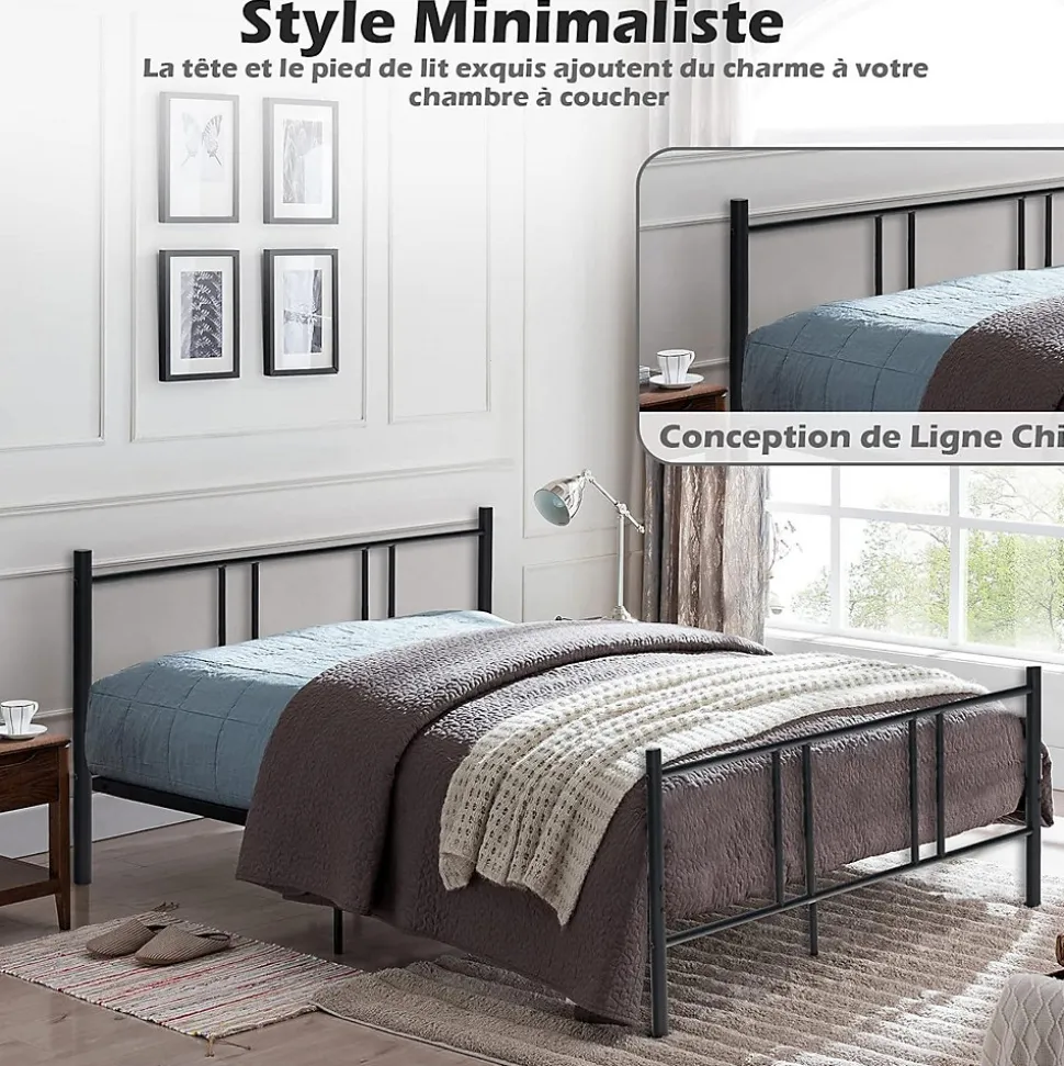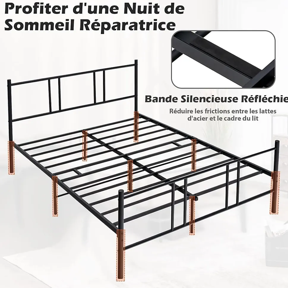 - Sommeil doux et confortable : Notre cadre de lit métallique dispose de 10 lattes en acier robuste, ce qui permet à ce meuble de ne pas vaciller ou craquer lorsque vous roulez dessus. En outre, la barre anti-bruit aide à réduire la friction entre les lattes et le cadre afin d’assurer un sommeil doux et profond.