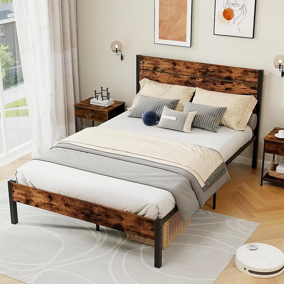 - Style Industriel Rustique de la Tête de Lit : Élevez votre chambre avec le design élégant de la tête de lit en bois et le cadre en métal sophistiqué. Les détails en faux grain de bois ajoutent une touche de charme industriel, créant une pièce maîtresse élégante pour toute décoration de chambre.