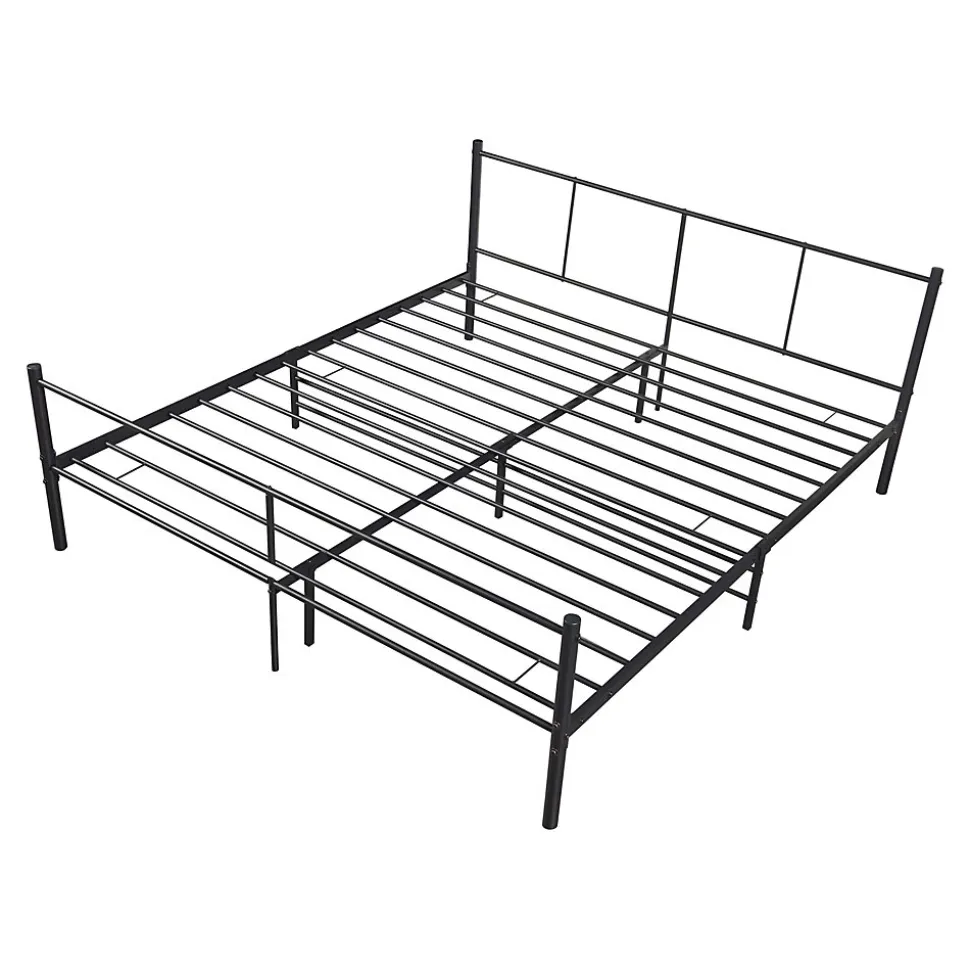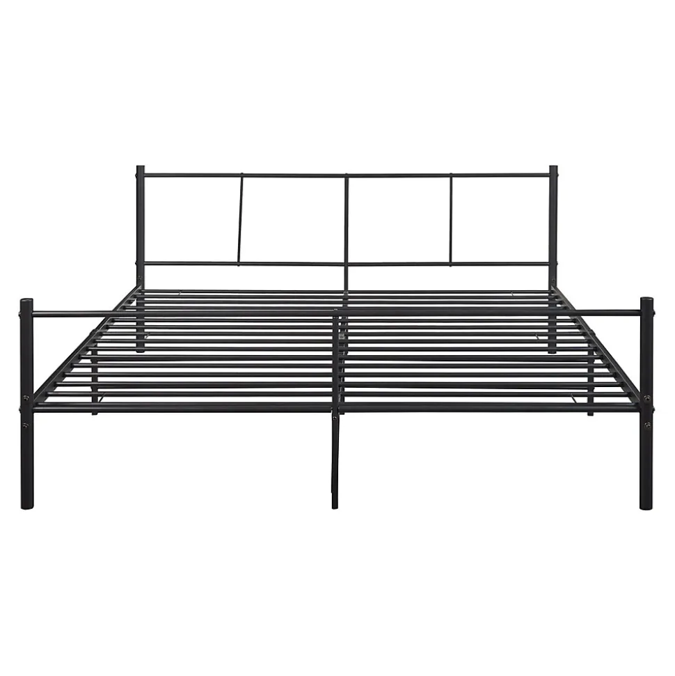 - Ce cadre de lit en métal est une construction pratique et solide. Doté des lattes métalliques, il vous offre un support optimal et assure le confort durant le sommeil.