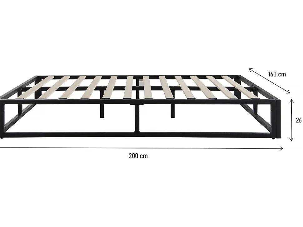 Ce sommier est l’ajout parfait pour votre chambre à coucher, offrant un support solide et confortable pour votre matelas. Avec ses dimensions généreuses de 160 x 200 cm, ce sommier peut accueillir un matelas queen-size, vous offrant ainsi suffisamment d’espace pour vous étendre et profiter d’un sommeil réparateur.Ce sommier dipose de 12 lattes en contreplaqué, assurant ainsi une répartition équilibrée du poids corporel pendant la nuit. Les lattes offrent également une excellente ventilation, ce qui contribue à maintenir une température agréable pendant le sommeil.Sa structure solide et robuste en métal garantit une durabilité exceptionnelle, assurant ainsi une longue durée de vie pour votre lit. Sa finition noire élégante ajoute une touche de sophistication à votre chambre à coucher. Sommier à lattes 160 x 200 cm – Structure en métal noir .Descriptif du sommier: Sommier à lattes – 160 x 200 cm – Structure en métal noirCouleurs: noirDimensions: 160 x 200 x 26 cmDimensions du couchage: 160 x 200Dimensions des lattes: 153 x 5,1 x 1,1 cmMatières: MetalStructure: métalNombre de lattes: 12pieds: Founispieds: OuiPoids: 24.5 kgColisage: 1 colis : – 1,97 x 0,27 x 0,17 m, 24,5 kg
