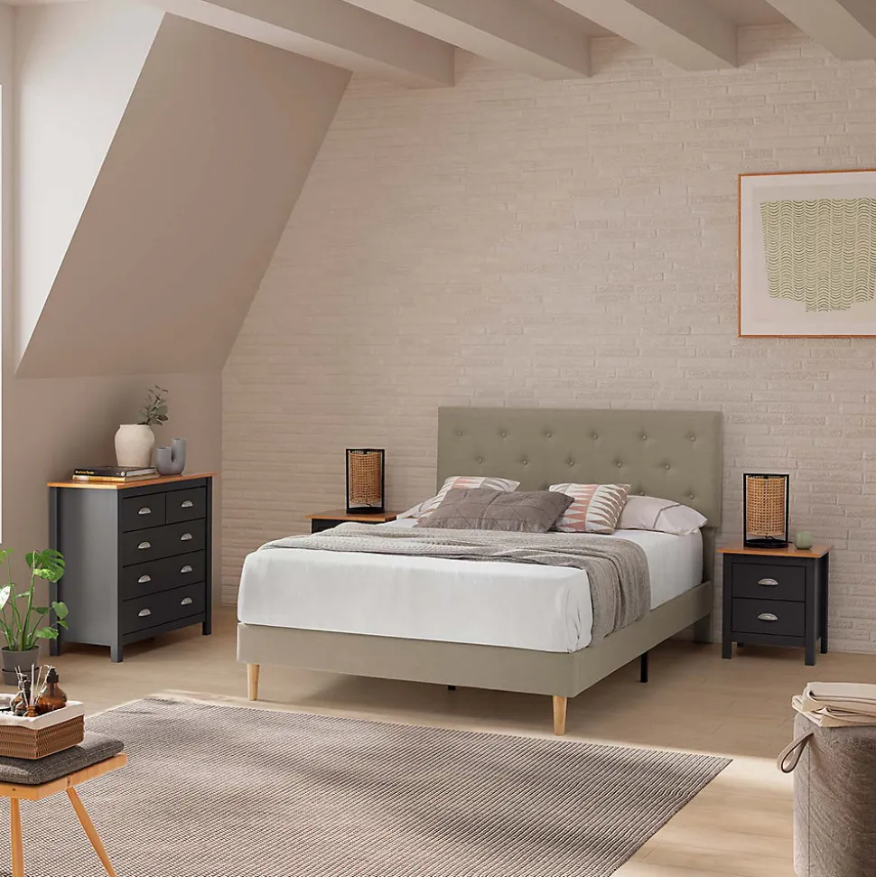 Cadre de lit rembourré Rosi 30 cm, 90×190 cm, Beige