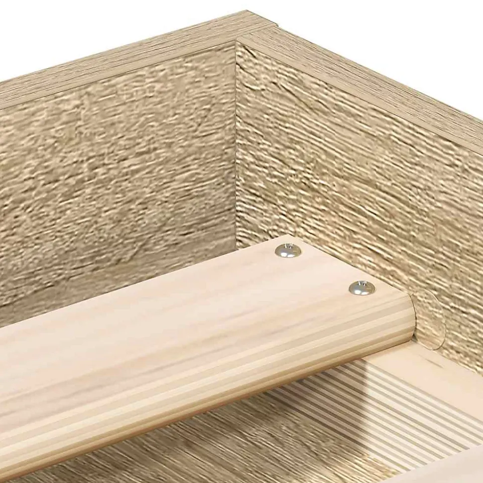 Cadre de lit robuste en chêne sonoma, idéal pour matelas 120×190 cm. Structure bois d’ingénierie avec lattes en contreplaqué et pieds métalliques pour un soutien et une stabilité renforcés. Espace de rangement pratique grâce à une hauteur ajustable et 6 compartiments latéraux. Design moderne et entretien simplifié. Montage facile.
