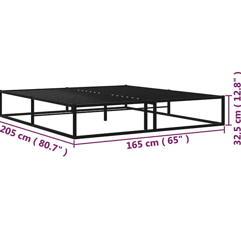 Cadre de lit solide en métal noir avec sommier à lattes, dimensions 165 x 205 x 32,5 cm (L x l x H). Conception moderne et facile à monter. Idéal pour matelas 160 x 200 cm (matelas non inclus).