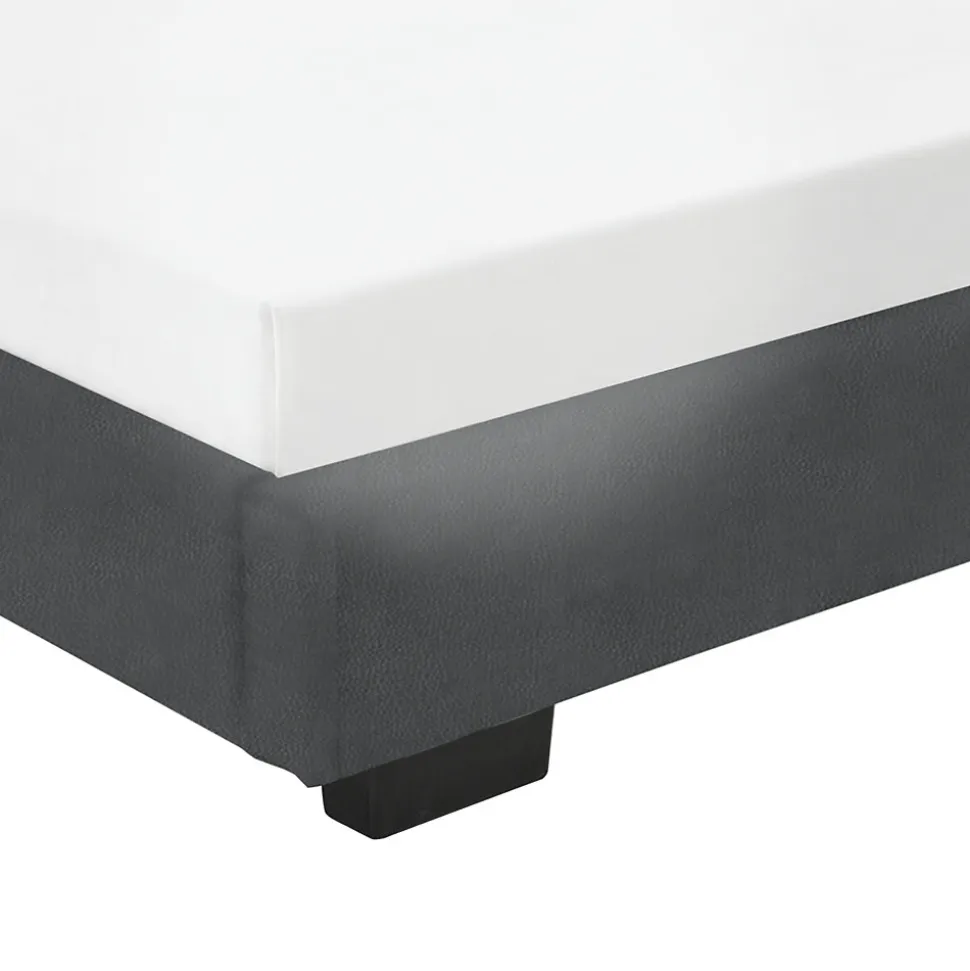 - Matière : – cadre de lit en MDF rembourré avec similicuir – sommier à lattes en plaque de bois – pieds de lit en plastique