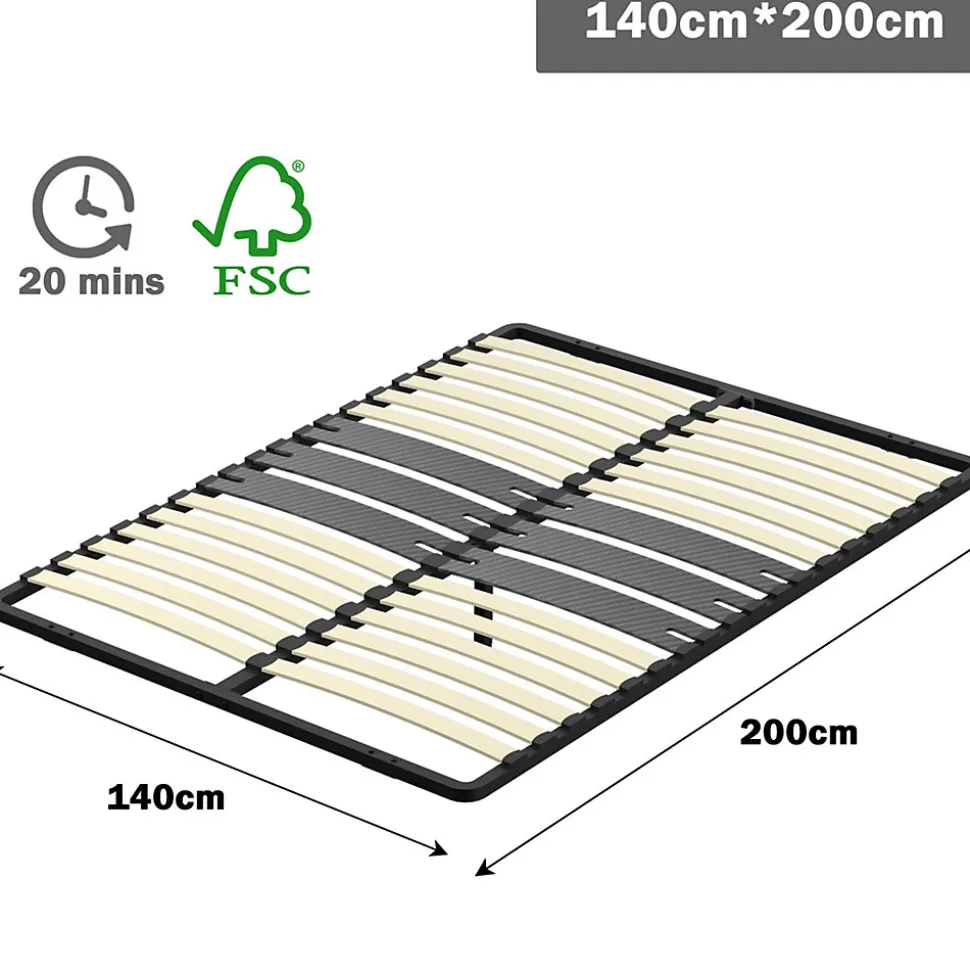 Description du produit:Dimensions du cadre de lit : 140x200x29cmPoids maximum supporté (kg) :Si un assemblage est nécessaire : OuiContient du bois : OuiAvec pieds de lit : OuiNombre de pieds de lit : 1(pied central, amovible)Matériau des lattes : peuplierNombre de lattes : 2x15pcsTaille des lattes : au milieu 3 rangées x2 planche large en bois gris (125*9mm) + 12 rangées x2 bois courbé blanc (53*9mm)Taille de l’emballage du produit longueur : 203 cmTaille de l’emballage du produit largeur : 28.5cmTaille du colis : 12,5 cmPoids du colis : 19.2kgRemarque : le cadre de lit doit être assemblé soi-même !